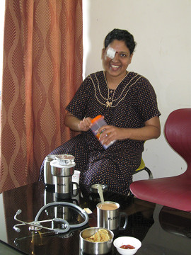 が、一昨日、二人目のインド人の若奥さんが入院してきました。 結婚して一人の男児に恵まれてからすぐ右眼の腫瘍が出来、眼球摘出→放射線治療→再発→摘出→放射線治療→再発→摘出…を4年おきに繰り返している。という気の毒な人で、今回は現代医学医師の紹介で、アーユルヴェーダも併用してみようじゃないか。ということで、現代医学医師と、抗がん剤とのコラボレーションもしている当院に紹介されて、毒素出し療法のために入院ということです。